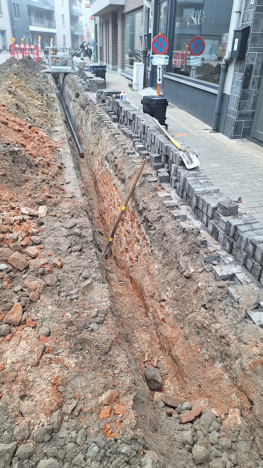 is men de laatste dagen volop bezig met graafwerken in het centrum van Hamont.