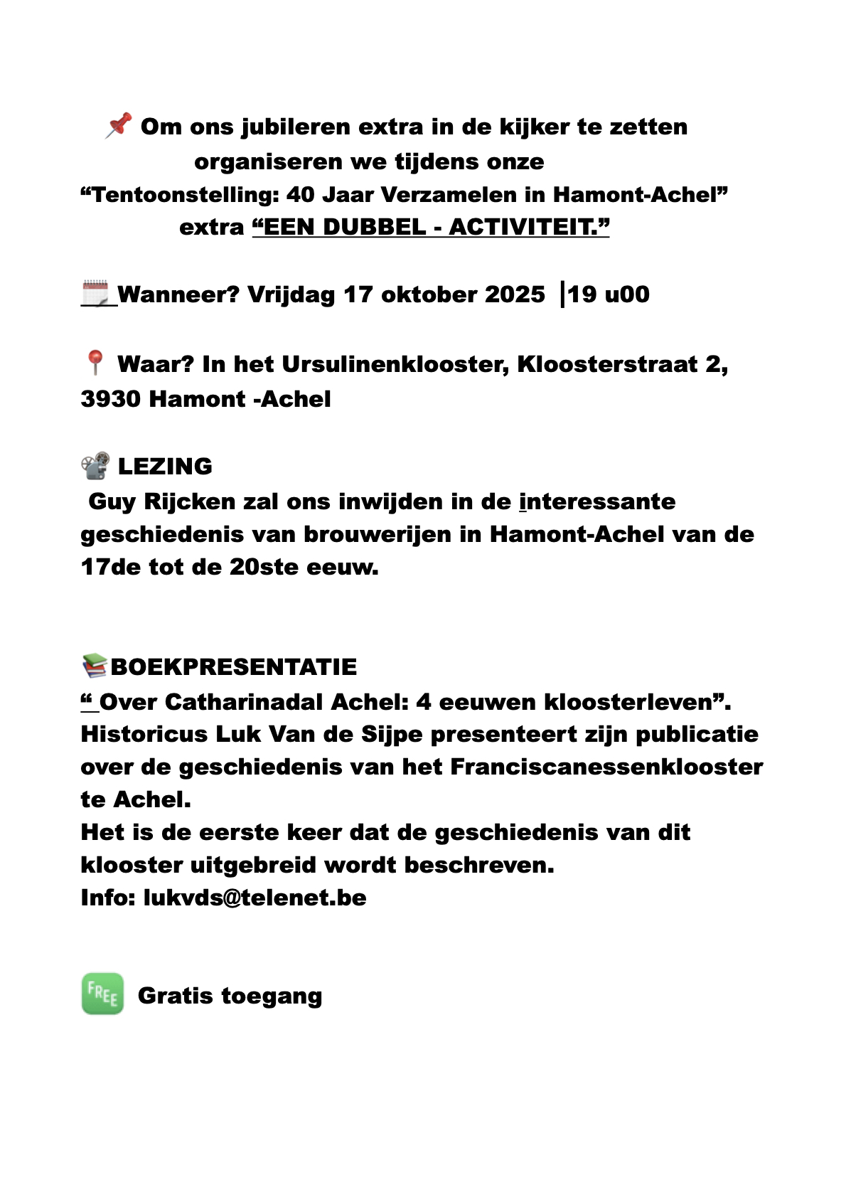 Extra dubbelactiviteit tijdens onze tentoonstelling 40 jaar verzamelen!